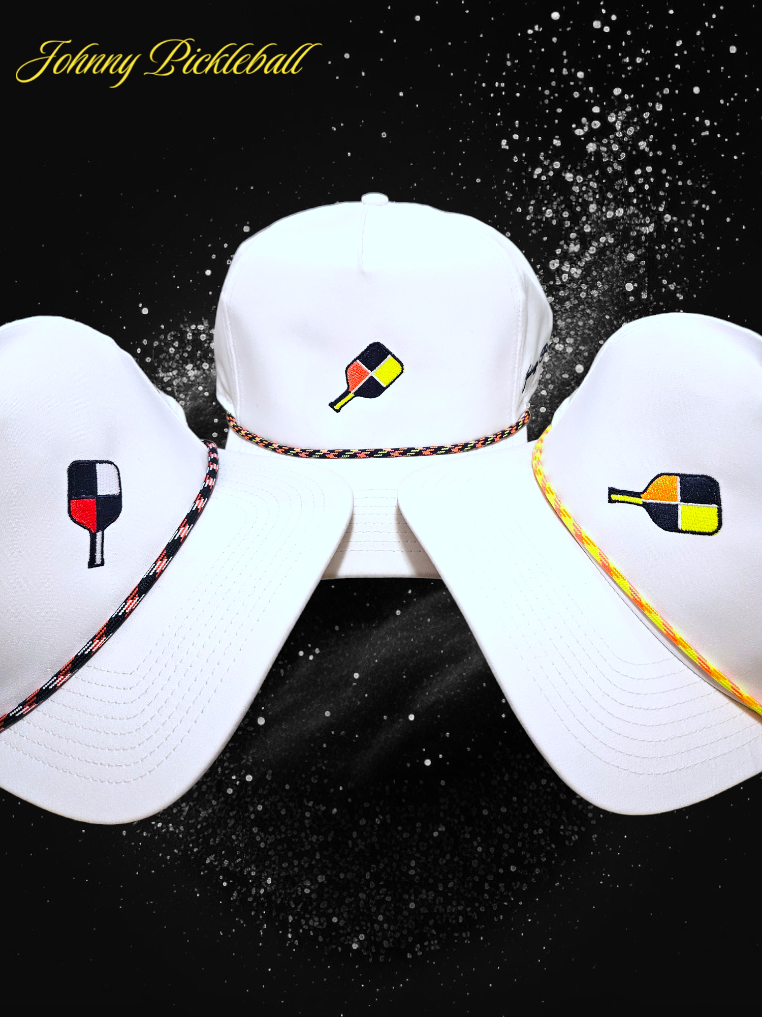 Play in style with Johnny Pickleball's paddle logo hat. Matching rope and paddle logo colors accompanied by a solid structured fit and adjustable snap closure. Look good and play good with the new line of Johnny Pickleball caps.